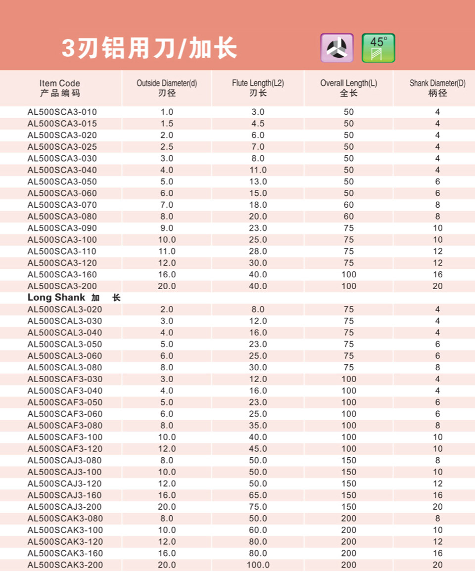 3刃不等分鋁用刀/加長
