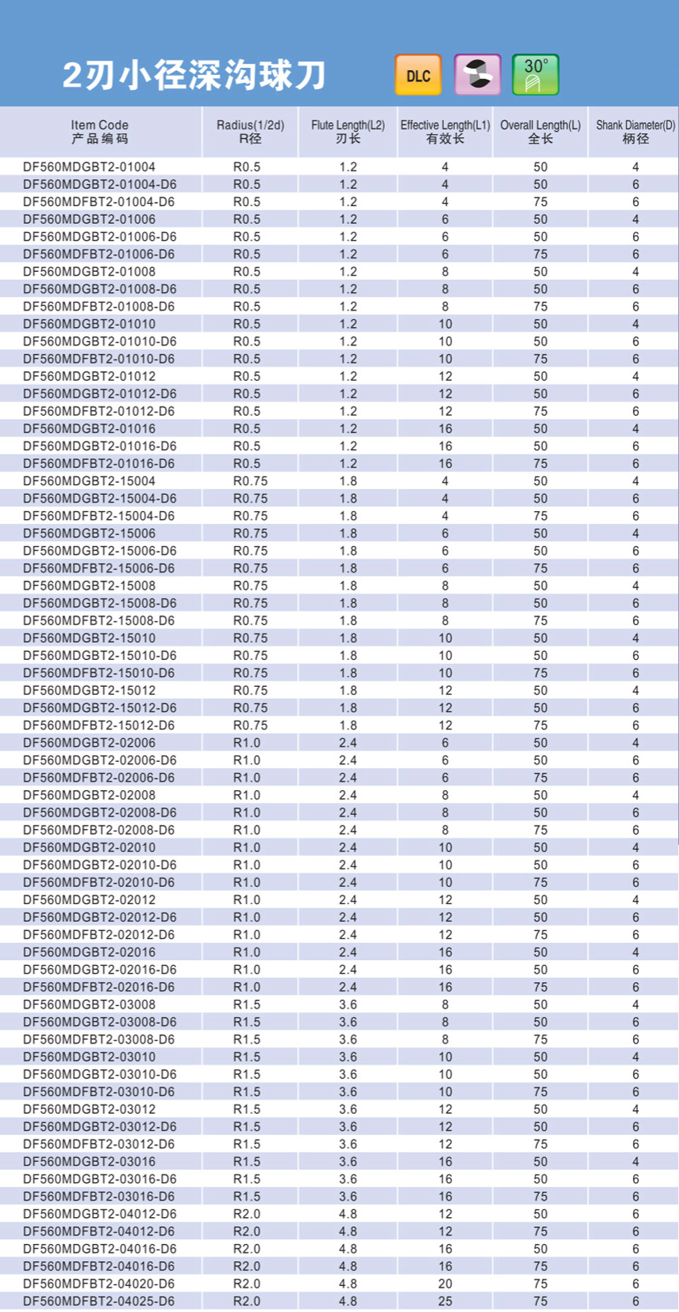2刃微小徑深溝平刀