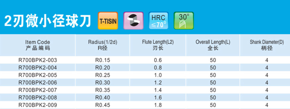 2刃微小徑深溝圓鼻刀