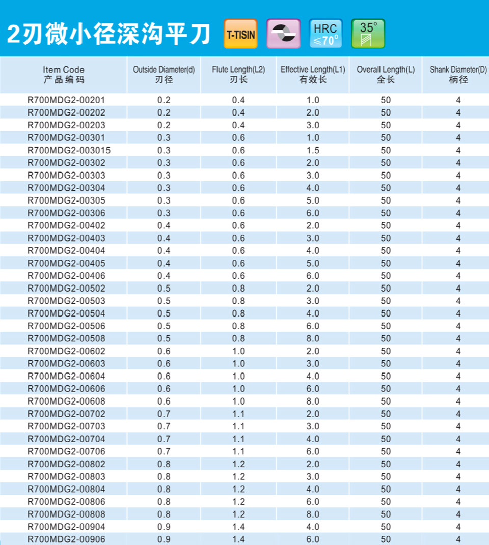 2刃微小徑深溝平刀