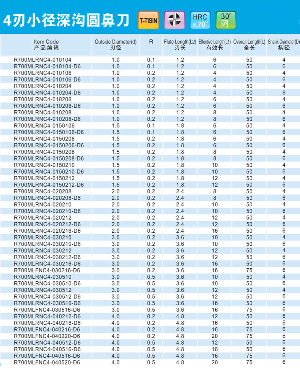 4刃小徑深溝圓鼻刀
