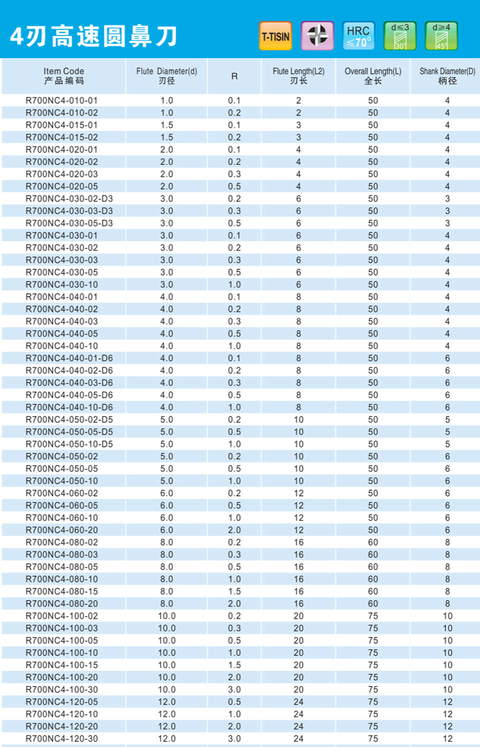 不等分不等螺旋加長(zhǎng)圓鼻刀4刃