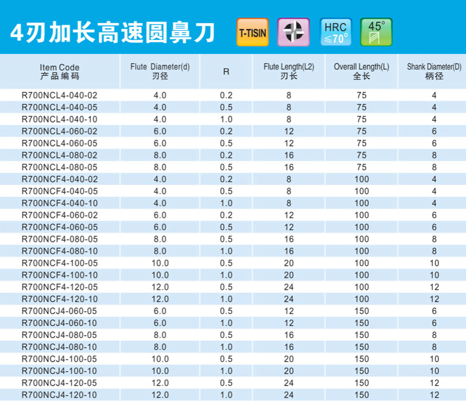 4刃加長高速圓鼻刀