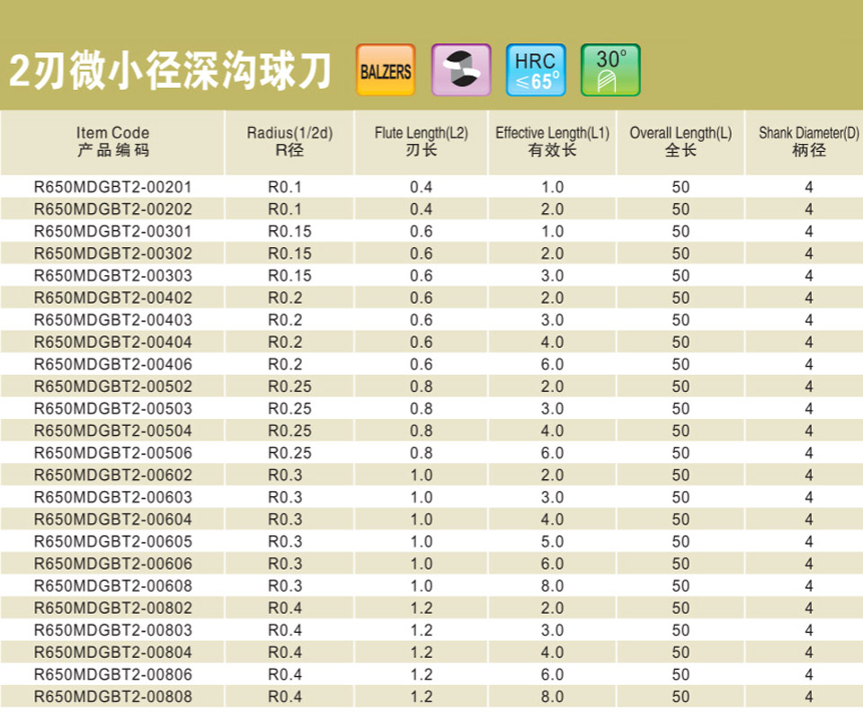 2刃微小徑深溝球刀