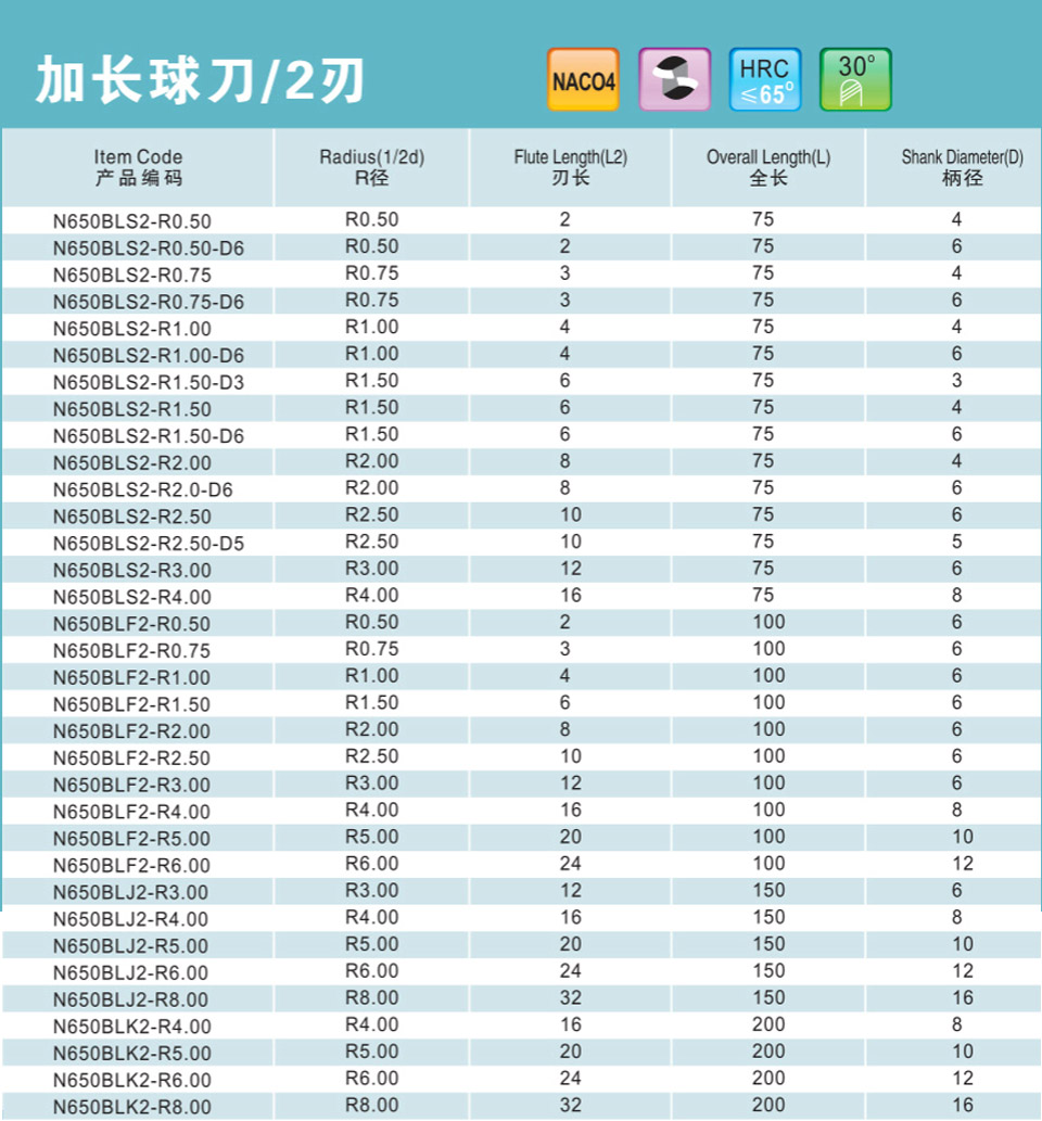 2刃加長高速球刀