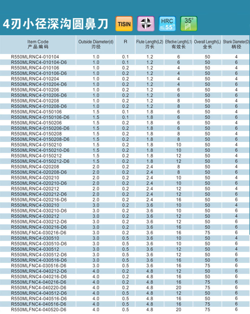 4刃小徑深溝圓鼻刀