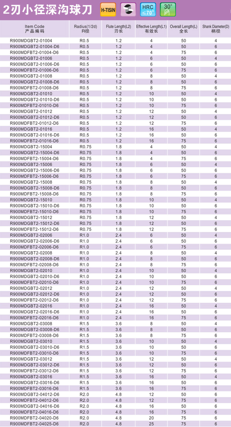 2刃微小徑深溝圓鼻刀