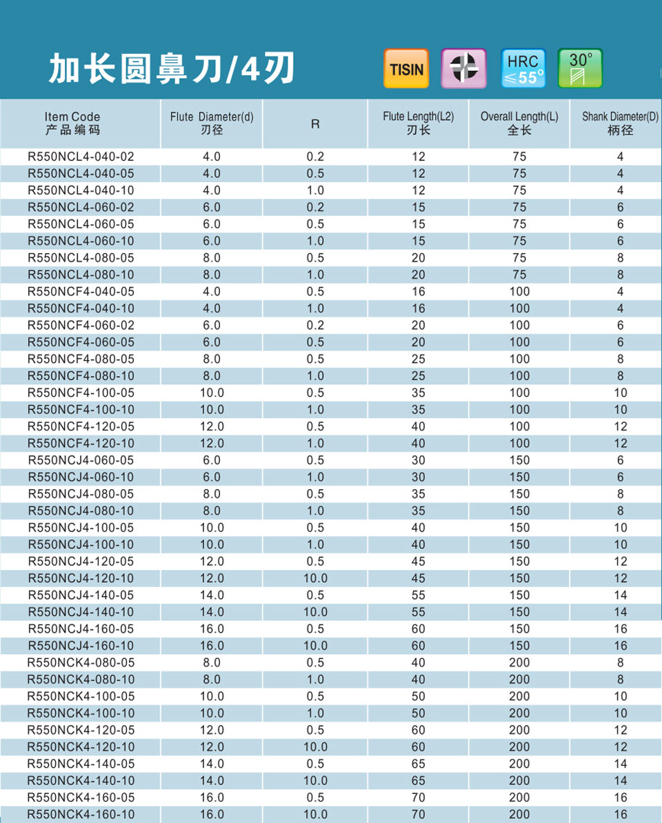 4刃加長(zhǎng)高速圓鼻刀