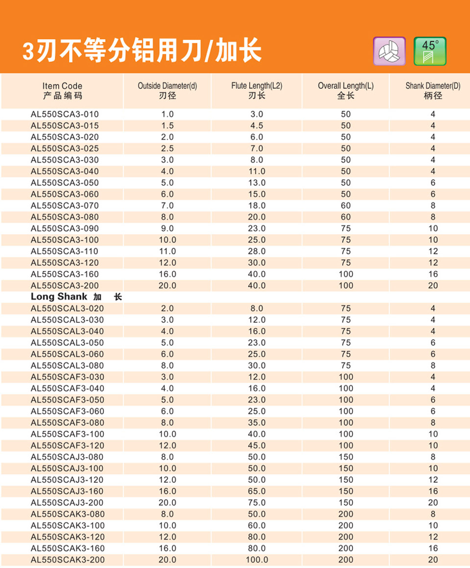 3刃不等分鋁用刀/加長