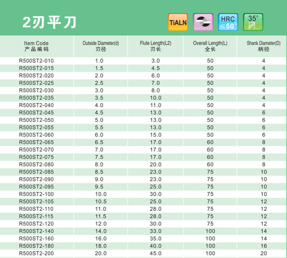 2刃微小徑深溝平刀