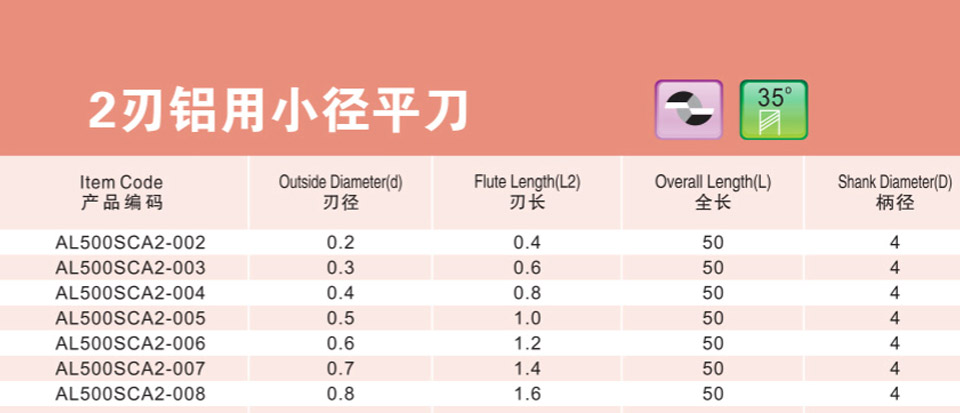 2刃微小徑深溝平刀